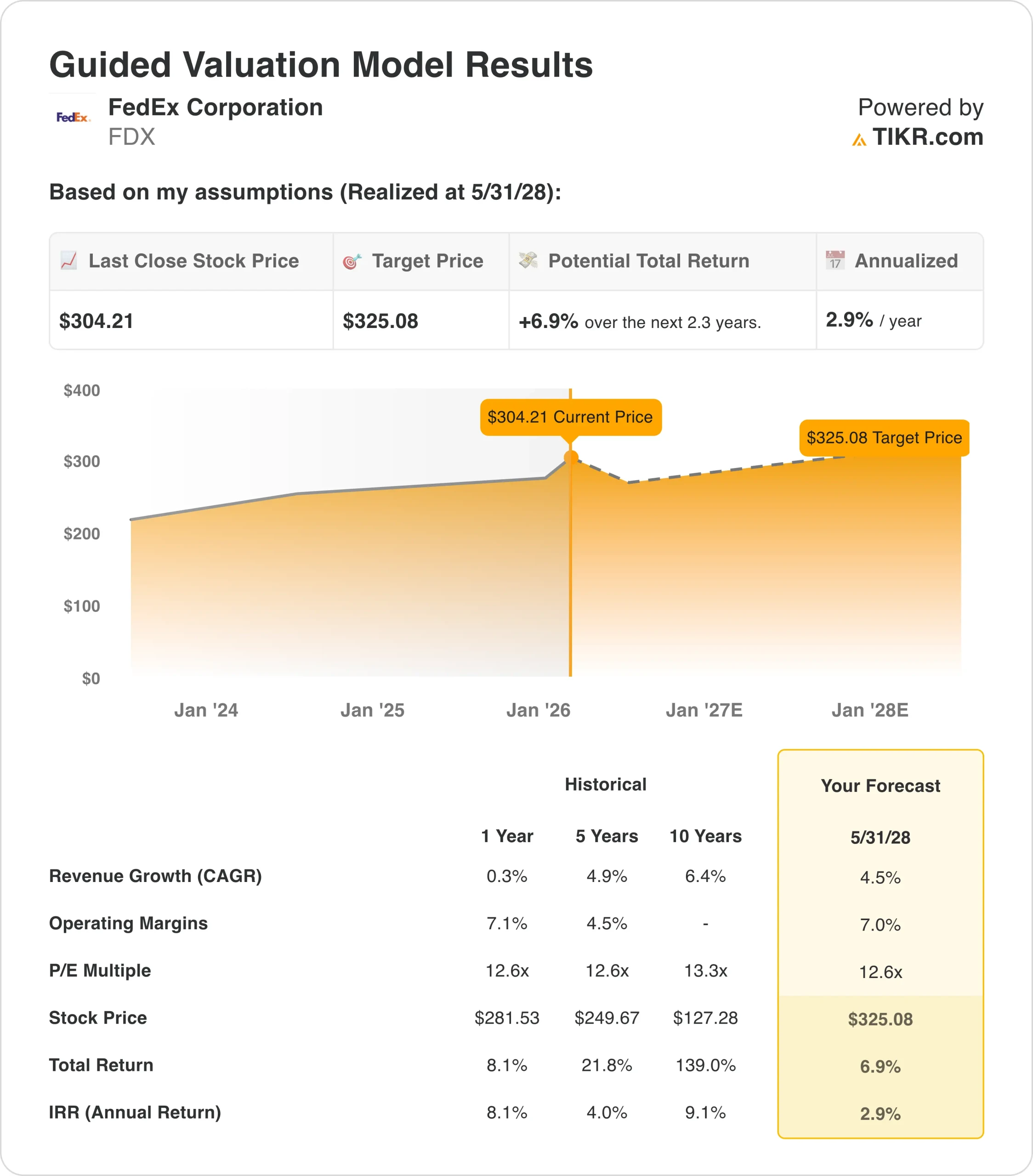 Valuta i tuoi titoli preferiti come FedEx con 5 anni di previsioni degli analisti utilizzando il nuovo modello di valutazione di TIKR (è gratuito) >>>.