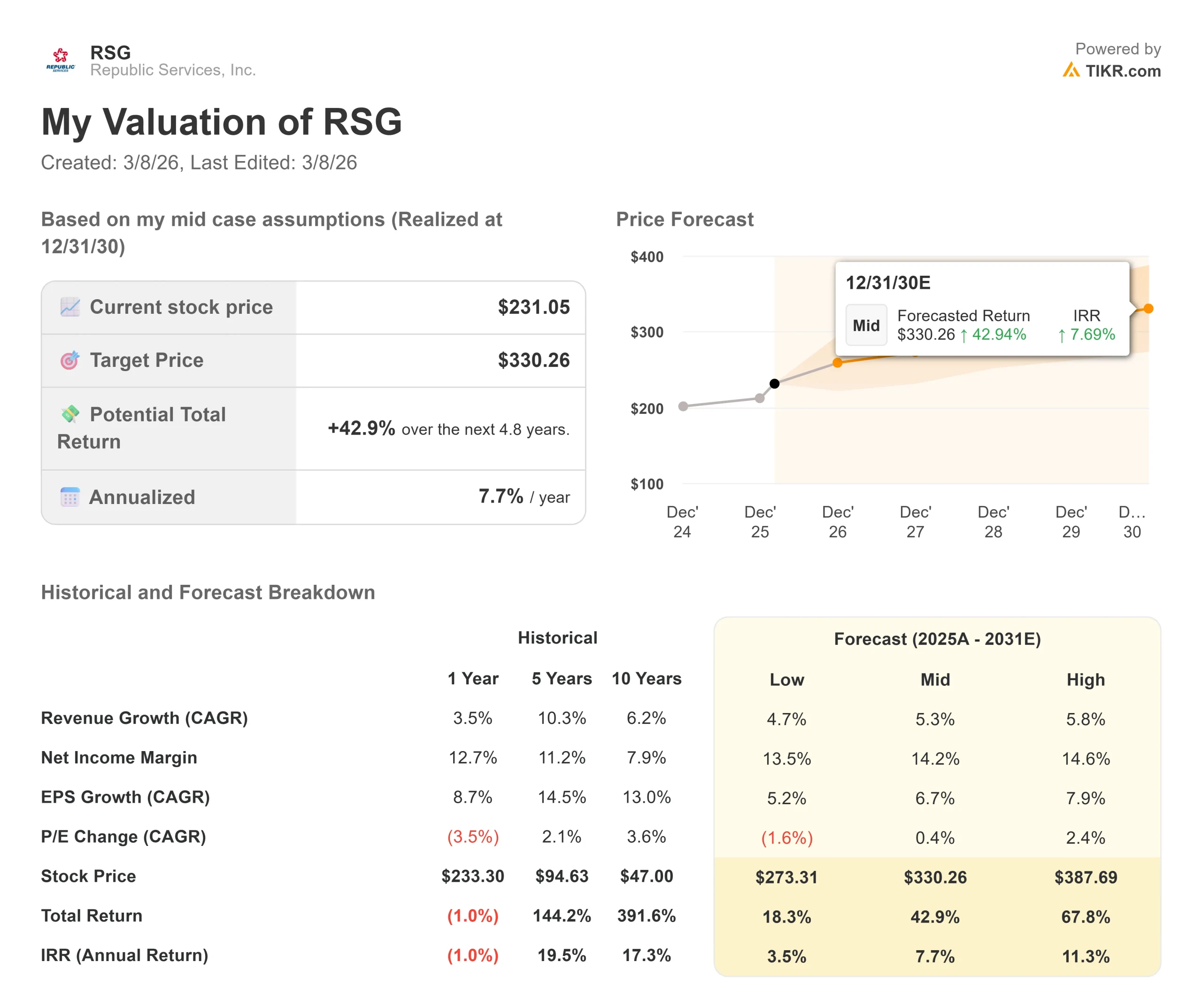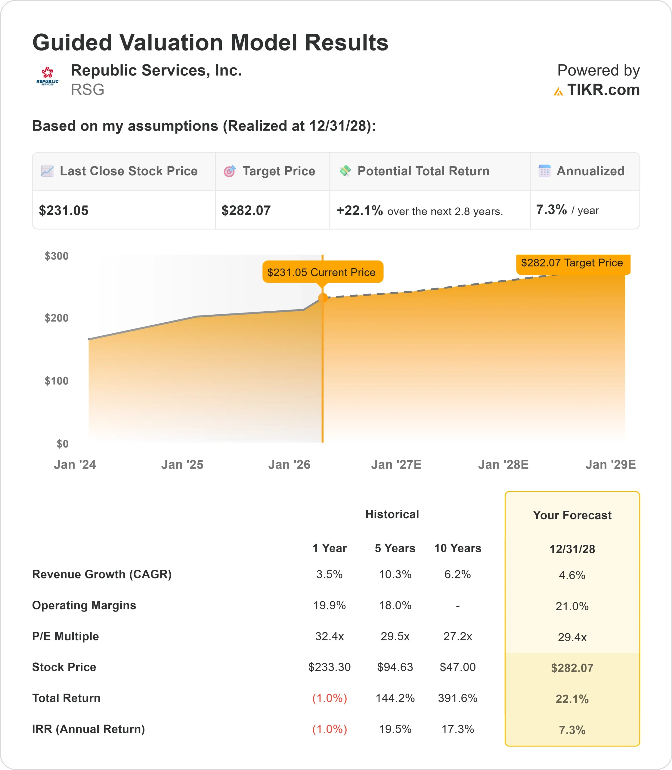 - Proiezione dei prezzi: Sulla base dell'attuale esecuzione, il titolo RSG potrebbe raggiungere i 282 dollari entro dicembre 2028.