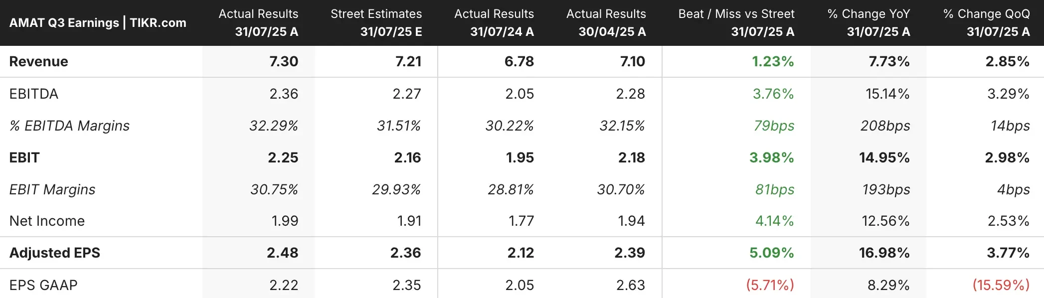 AMATは調整後の1株当たり利益をコンセンサス予想の2.39ドルに対して2.11ドルと予想し、売上高ガイダンスは67億ドルと予想の73.4億ドルを大幅に下回った。