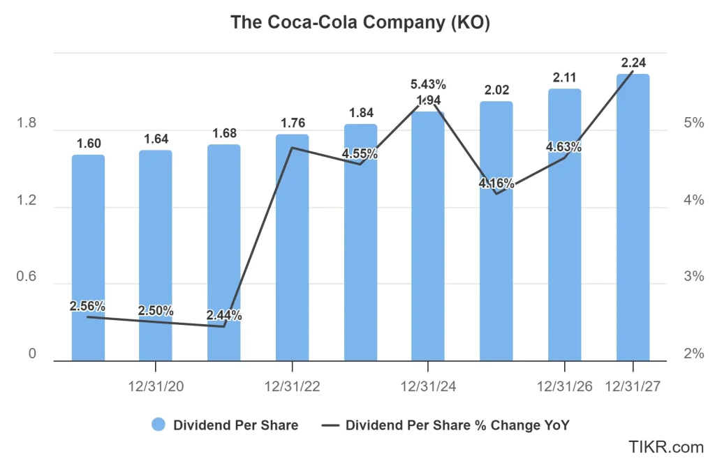 今後、コカ・コーラの配当成長ポテンシャルは引き続き有望だが、過去の増加率に比べれば緩やかになるかもしれない。