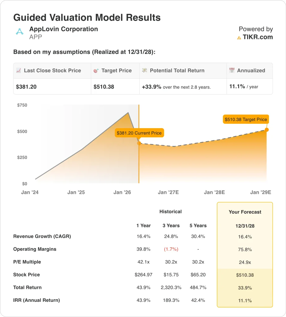 TIKRの新しいバリュエーション・モデル(無料)を使って、AppLovinのようなお気に入りの銘柄を5年間のアナリスト予測で評価する >>>