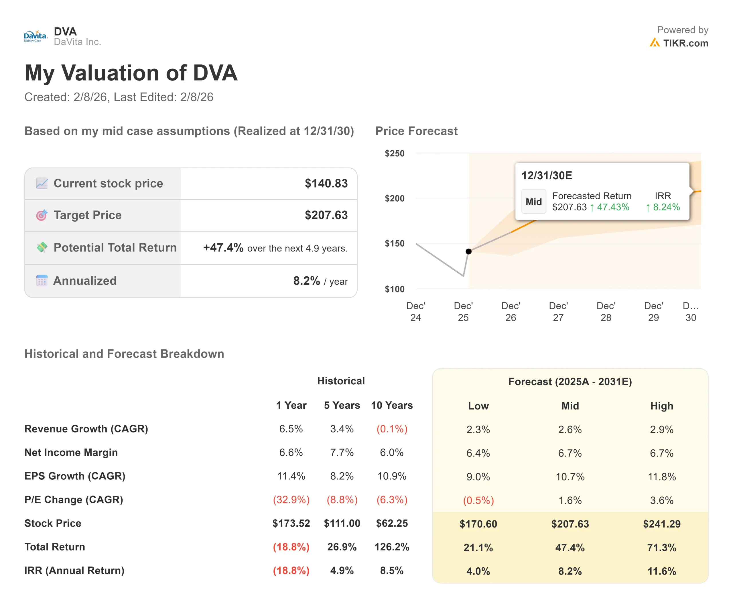 もしダヴィタが今後数年間で2%の容積成長という約束を果たすことができれば、現在の株価と目標株価207ドルのギャップは急速に縮まるはずだ。