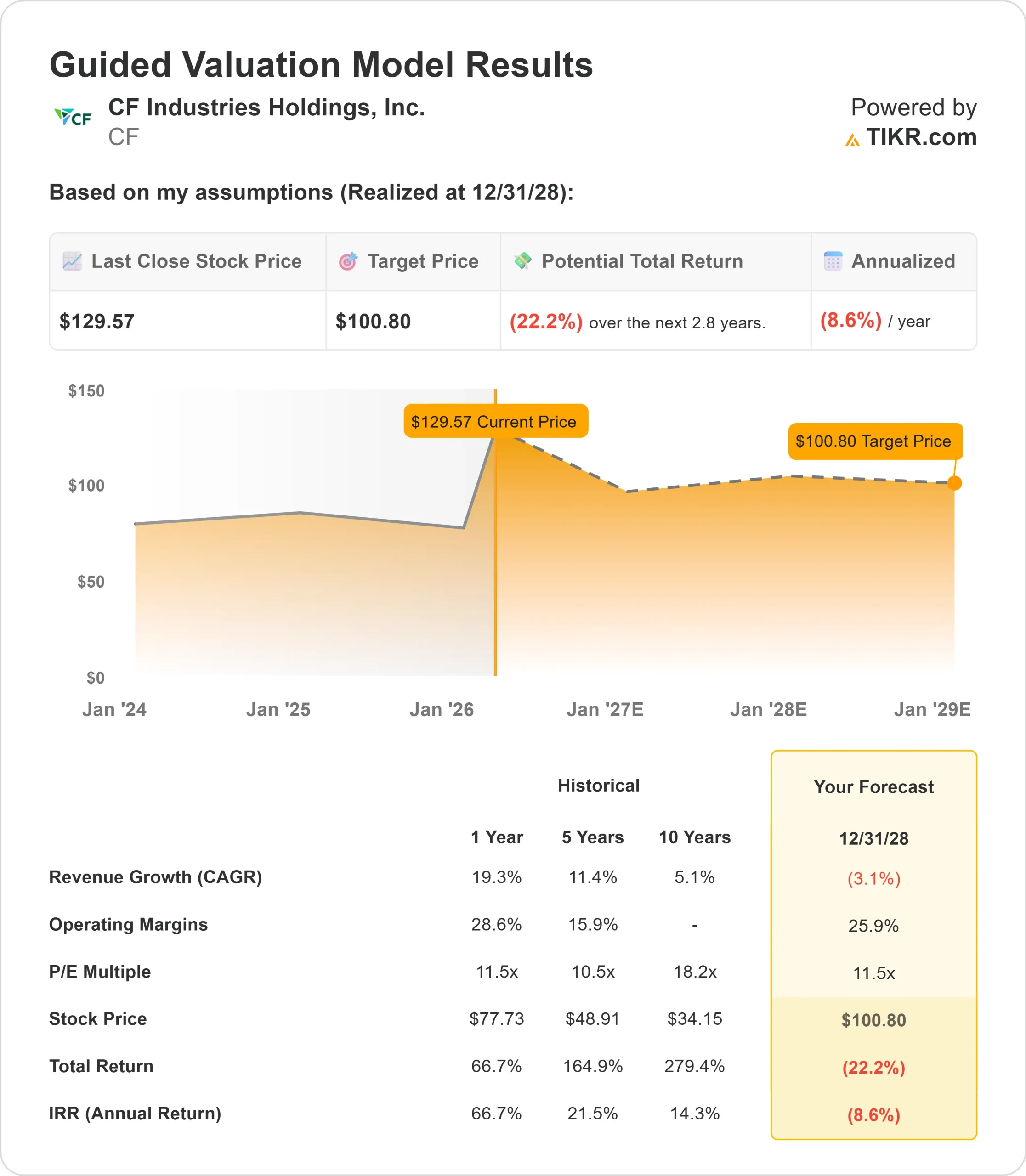CFインダストリーズ社の株価は、ここからどれくらい上昇するのか?
