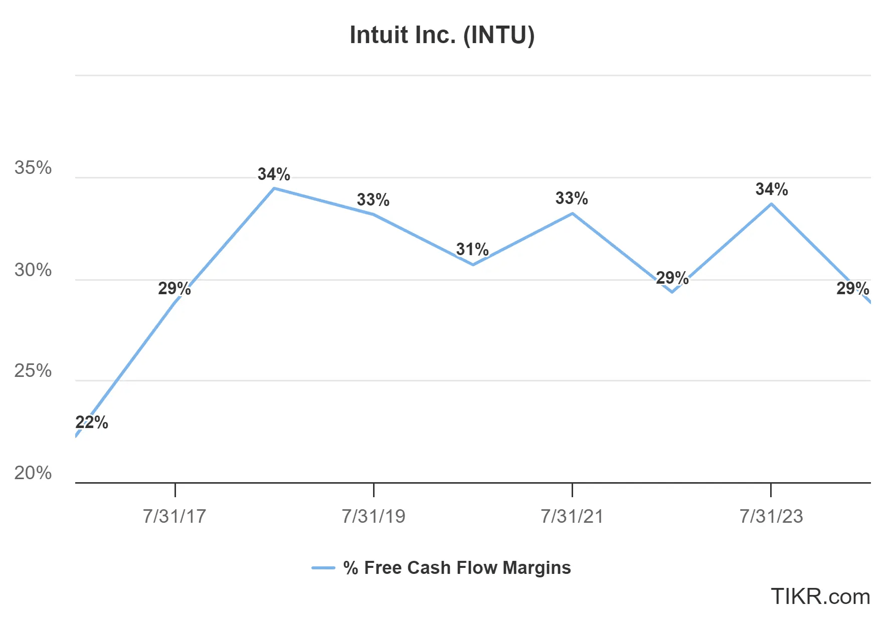 例インテュイット(INTU)は、QuickBooksやTurboTaxのような自社製品の高いスイッチング・コストによって築かれた堀により、常に強力なフリー・キャッシュ・フローを生み出している。