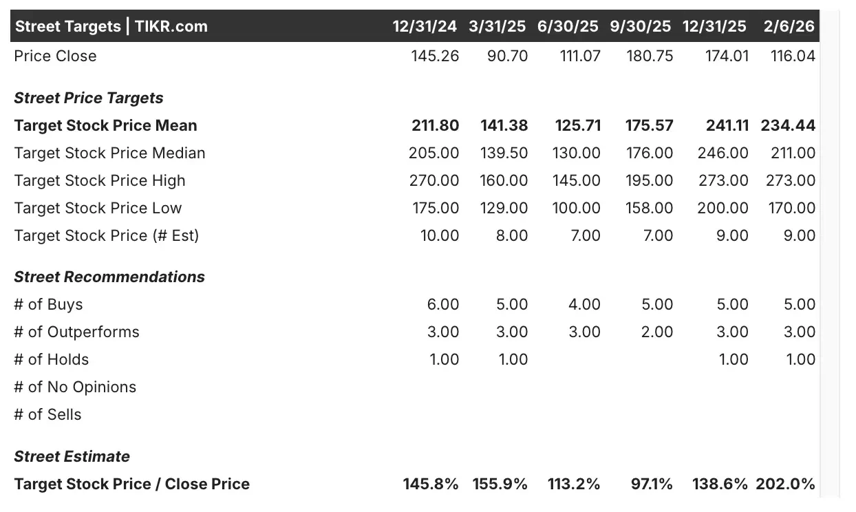 一部の外部モデルは、株価が100ドル台前半から半ばの本源的価値に対してやや過大評価されている可能性を示唆しており、最近の下落はそのギャップを部分的に狭めている。