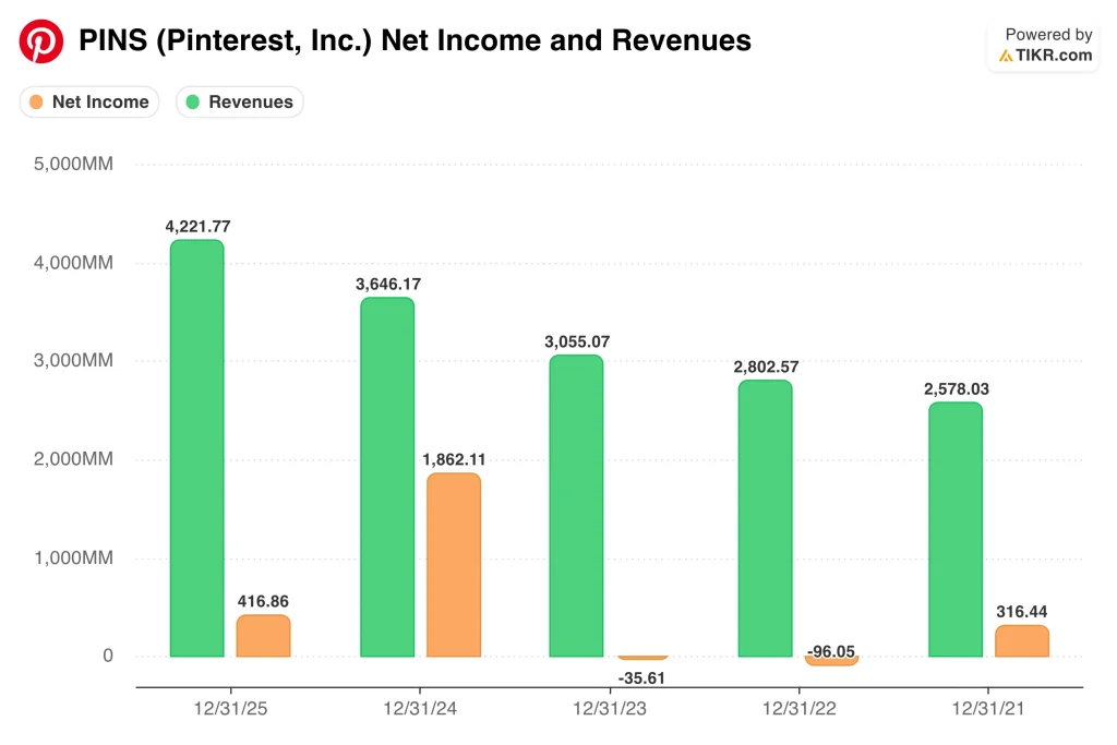 ピンタレストはまた、最新決算で堅調な収益性を報告した。同社は第4四半期に2億7700万ドルの純利益を計上し、収益化が改善する中で持続可能な収益性に向けた継続的な進展を示している。
