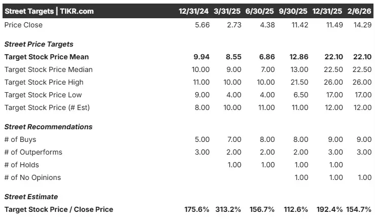 TIKRのストリート・コンセンサスによると、株価は鉱山の倍率からデータセンターの倍率に再格付けされ、大きな上昇余地がある。