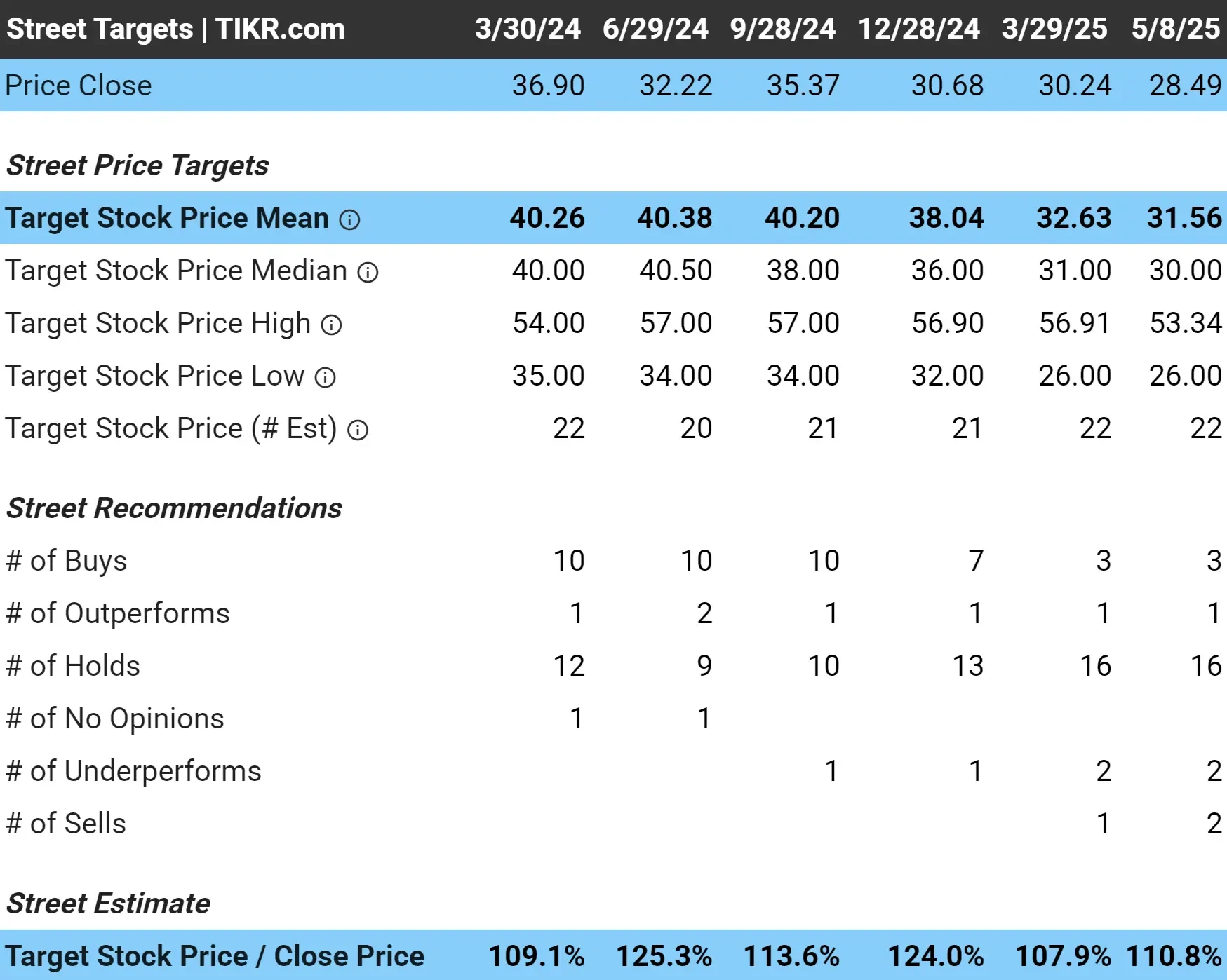 株価はまだ数年来の安値近辺で取引されているが、この予想される上昇率は、投入コストの緩和とマージンの改善により、今後の見通しがより安定していることを示唆している。