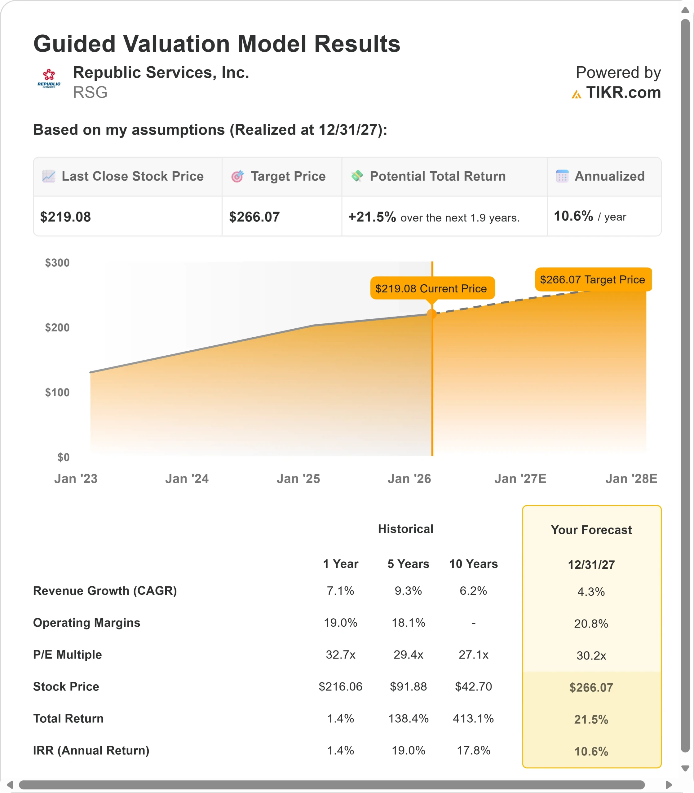 目先の課題にもかかわらず、リパブリック・サービシズの株価は219ドルで取引されており、同社の価格決定力を認識している投資家には上昇余地がある。