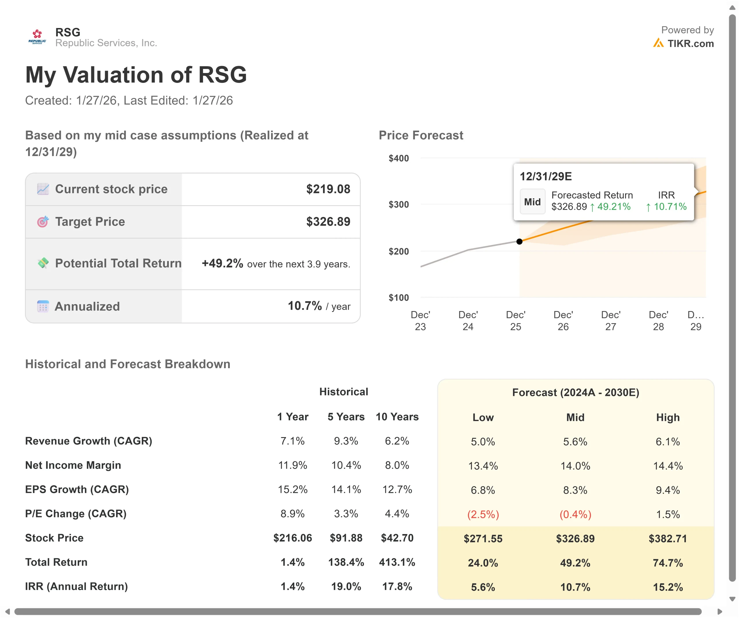 - 価格予測:現在の前提に基づくと、RSG株は2029年12月までに327ドルに達する可能性がある。
