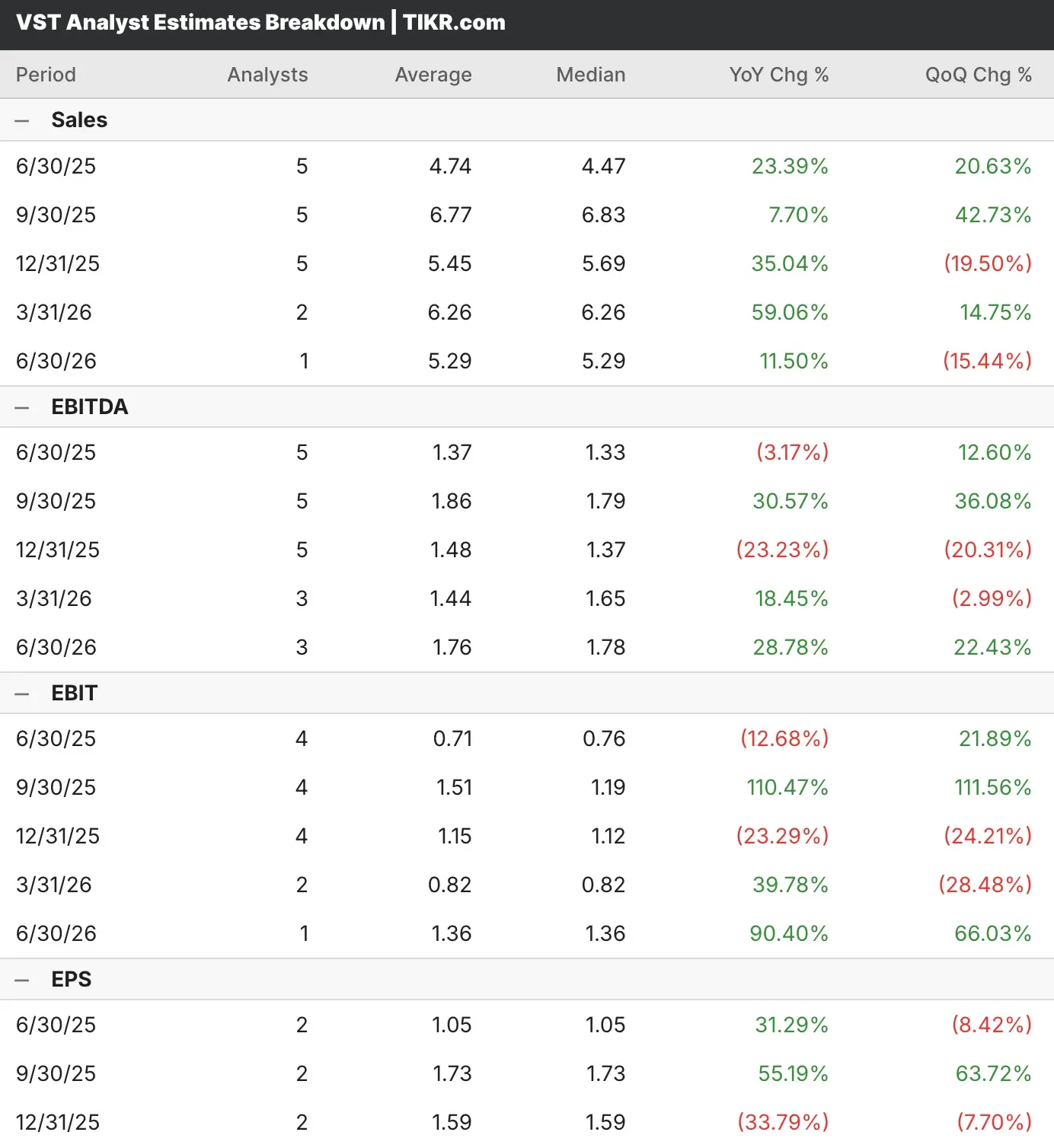 そう、ウォール街はビストラ・エナジーの2025年末の調整後純利益を22億1000万ドル、1株当たり6.59ドルと予想している。