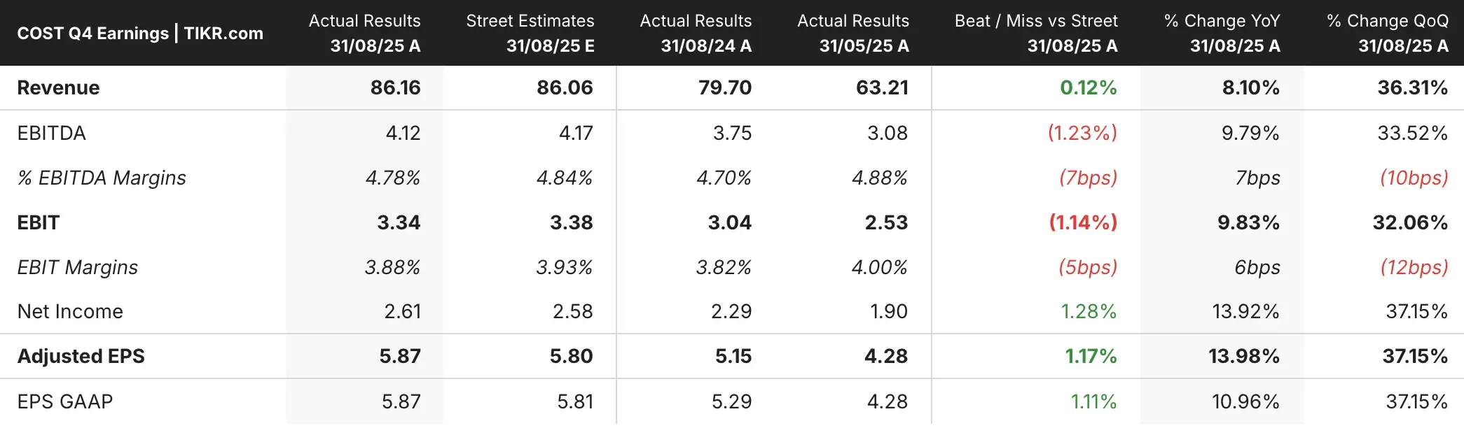 コストコ(COST)の株価は、第4四半期の利益と売上高でウォール街の予想を上回ったにもかかわらず、小幅安で取引されている。