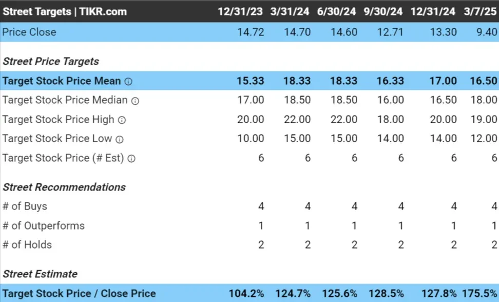 애널리스트들은 여전히 주가가 100% 이상 상승할 것으로 보고 있으며, 6개월 이상 평균 주당 30달러 이상의 목표 주가를 제시하고 있습니다.