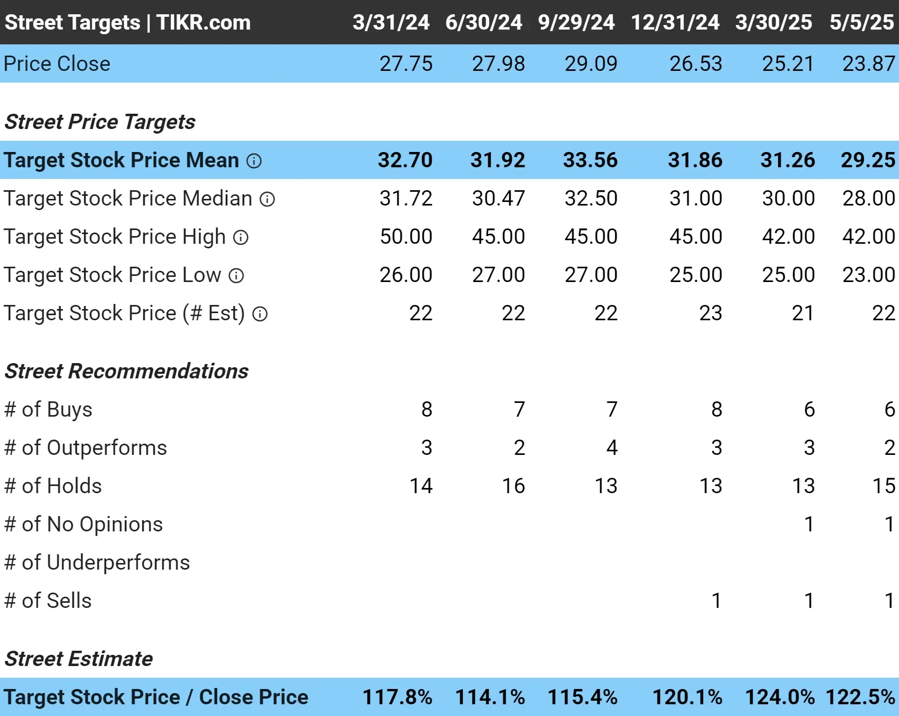 - 앞서 나가고 싶으신가요? TIKR 애널리스트의 예측 을 통해 5년간의 월스트리트 전망을 확인할 수 있으므로 투자하는 주식에 대해 확신을 가질 수 있습니다.