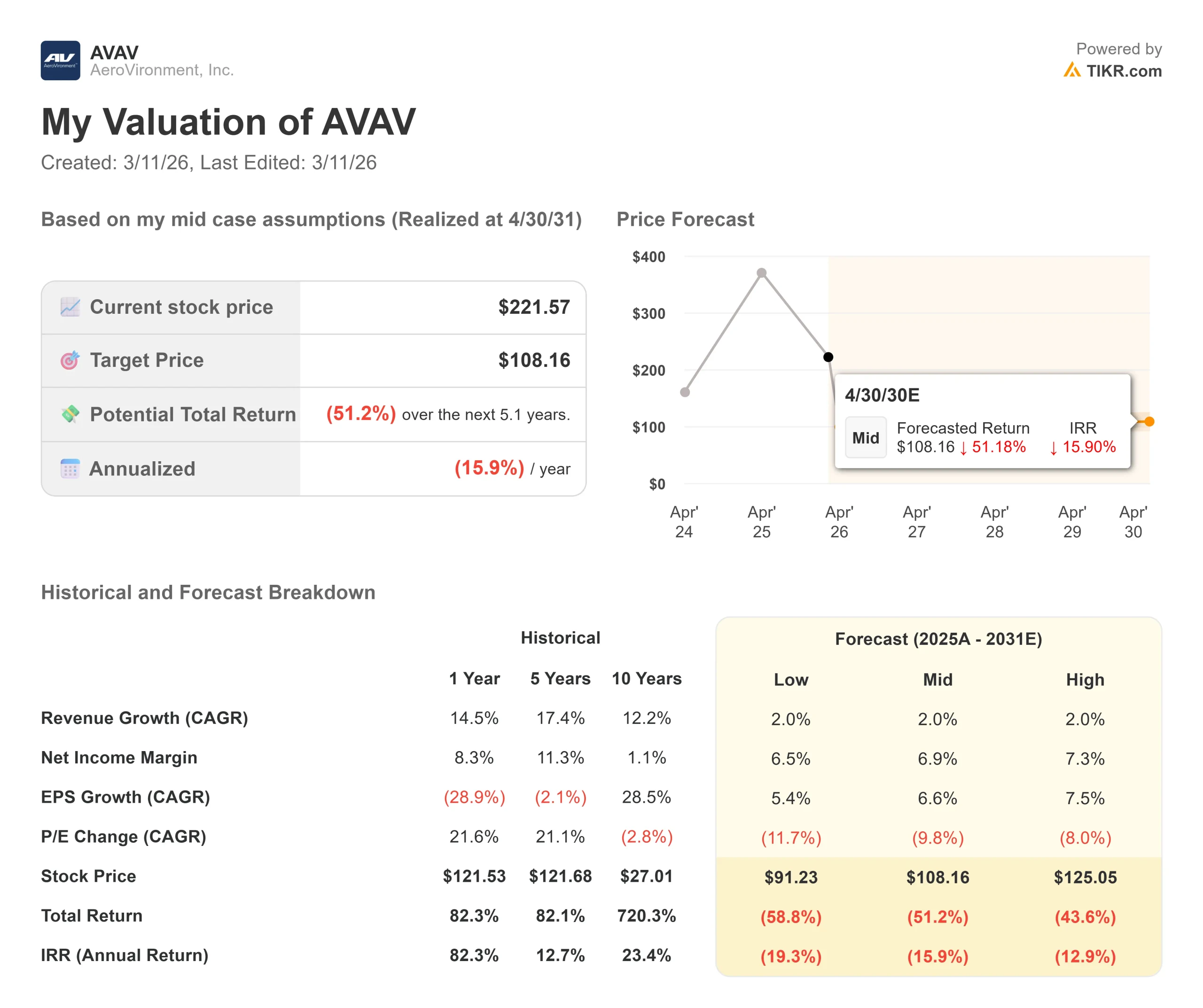 - 3월 10일 기준 $AVAV 주가: $222
