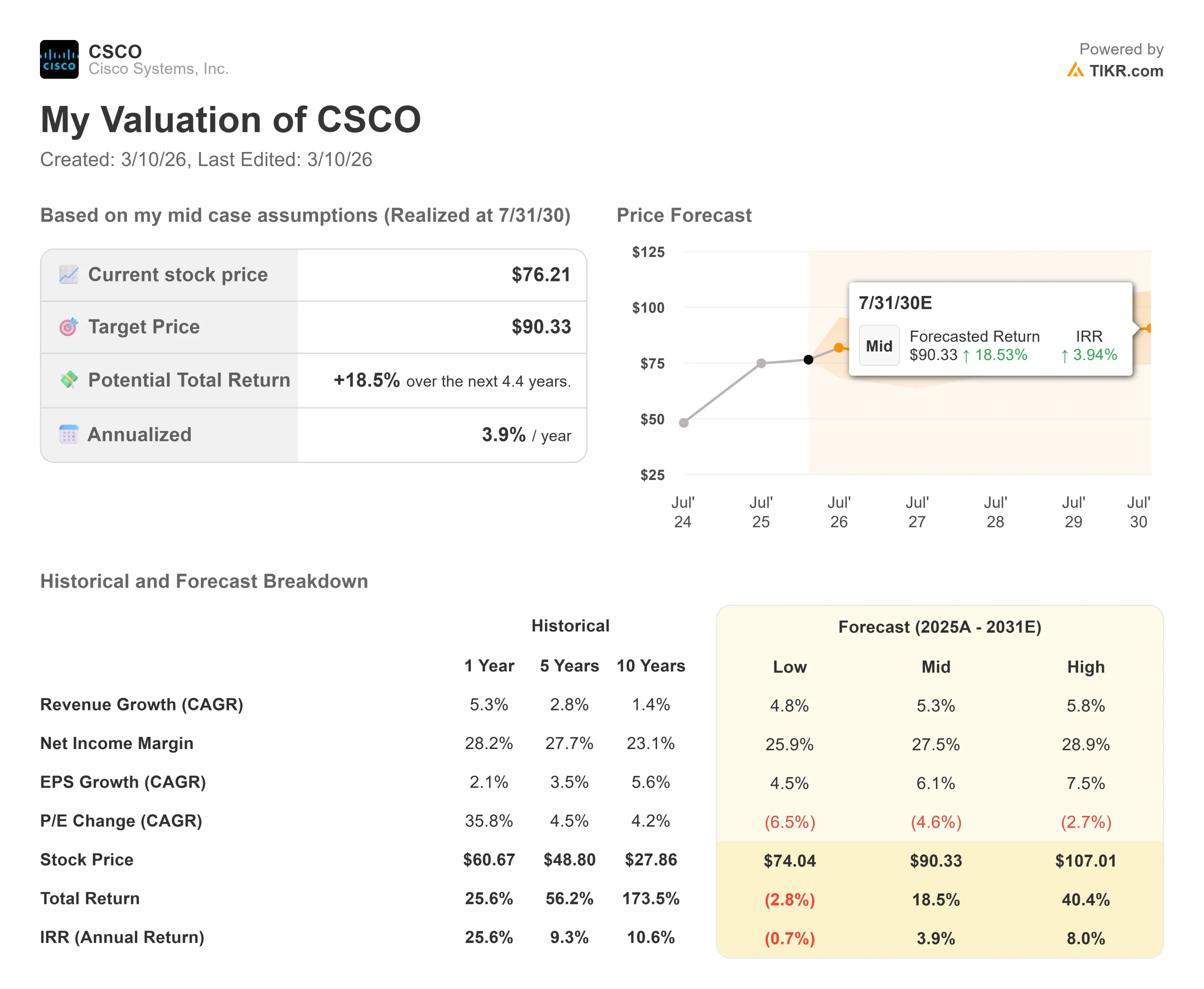 TIKR 무료에서 Cisco Systems 분석하기 →
