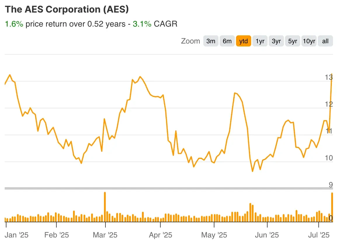 후행 수익의 7배, 선행 수익의 6배에 불과한 가격으로 거래되는 AES 주식은 재생 에너지 붐과 데이터 센터 전력 수요에 노출되기를 원하는 인프라 투자자들에게 매력적인 가격대로 보입니다.
