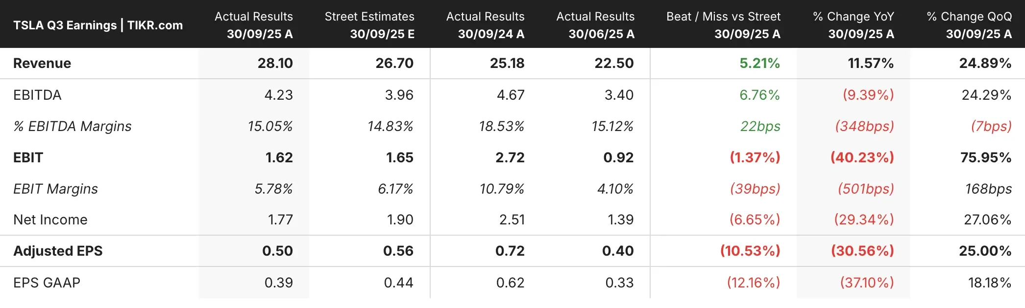 전기 자동차 제조업체가 3 분기 만에 첫 매출 증가를 기록 했음에도 불구하고 월스트리트의 기대치를 놓친 3 분기 실적을 발표 한 후 Tesla(TSLA) 주가는 거의 4 % 하락했습니다.