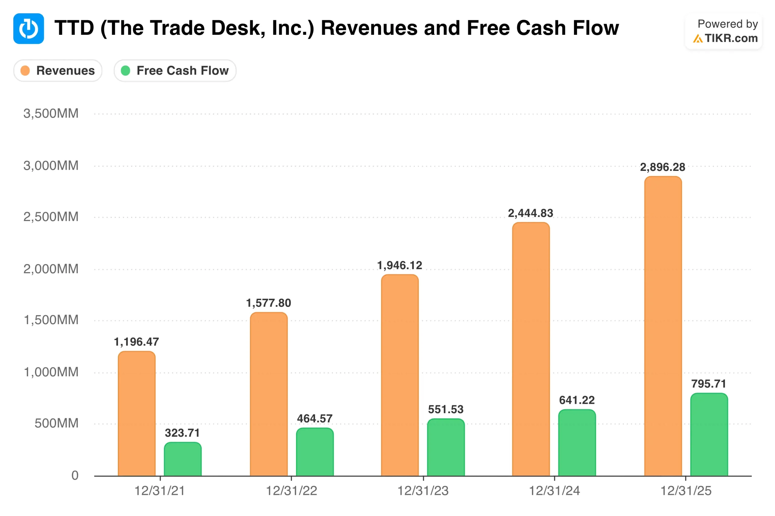 현금 흐름은 또 다른 중요한 지원입니다. 트레이딩 데스크는 2025년에 9억 9,270만 달러의 영업 현금 흐름과 7억 9,570만 달러의 잉여 현금 흐름을 창출했으며, 잉여 현금 흐름 마진은 27.5%를 기록했습니다. 이는 주가 변동성이 큰 시기에도 제품 개발, 데이터 역량, 플랫폼 확장에 계속 투자할 수 있는 유연성을 제공합니다.