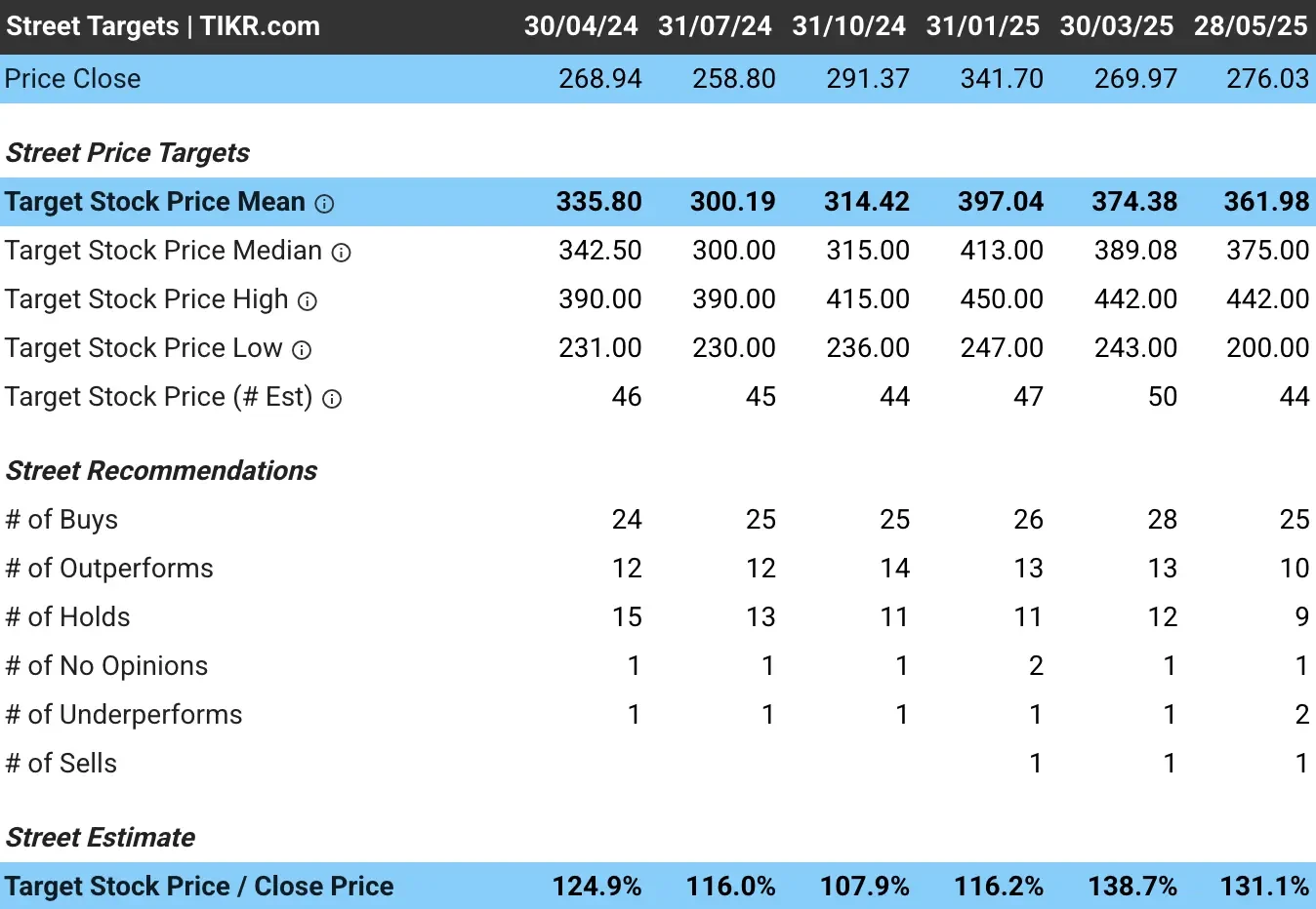 - 이는 현재 주당 가격인 276달러에서 28% 상승할 수 있는 잠재력이 있는 가격입니다.
