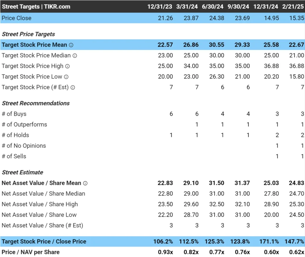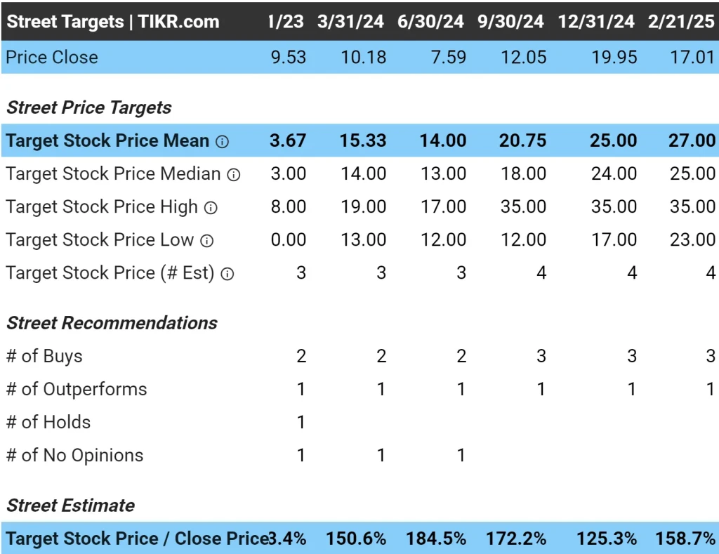 Os analistas acreditam que a ação tem um aumento de quase 50%, com uma meta de preço de aproximadamente US$ 23 por ação, em comparação com o preço atual de cerca de US$ 15 por ação.