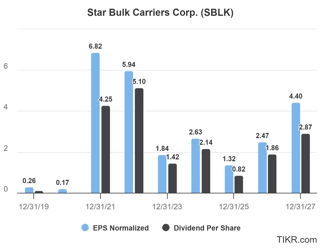 - Os analistas veem uma alta de 50% para a Star Bulk, impulsionada pelos ganhos esperados e pelo crescimento dos dividendos nos próximos 2 anos.