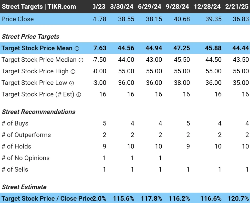 No momento, os analistas têm uma meta de preço médio de US$ 44 por ação, o que representa um aumento de cerca de 20% em relação aos níveis atuais.