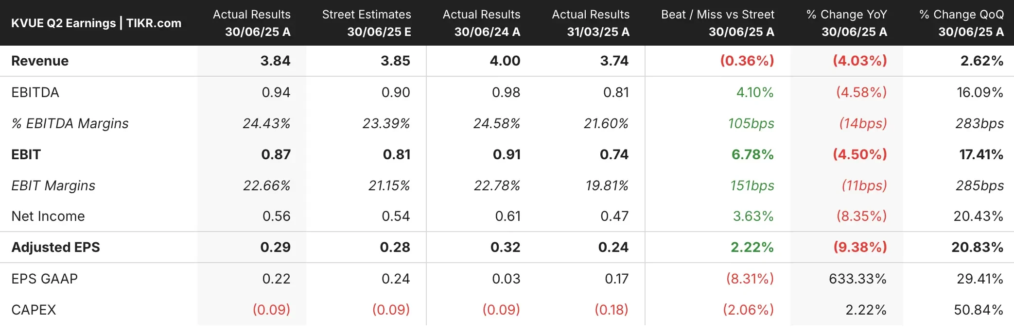 - Variação de preço da ação $KVUE: -10%