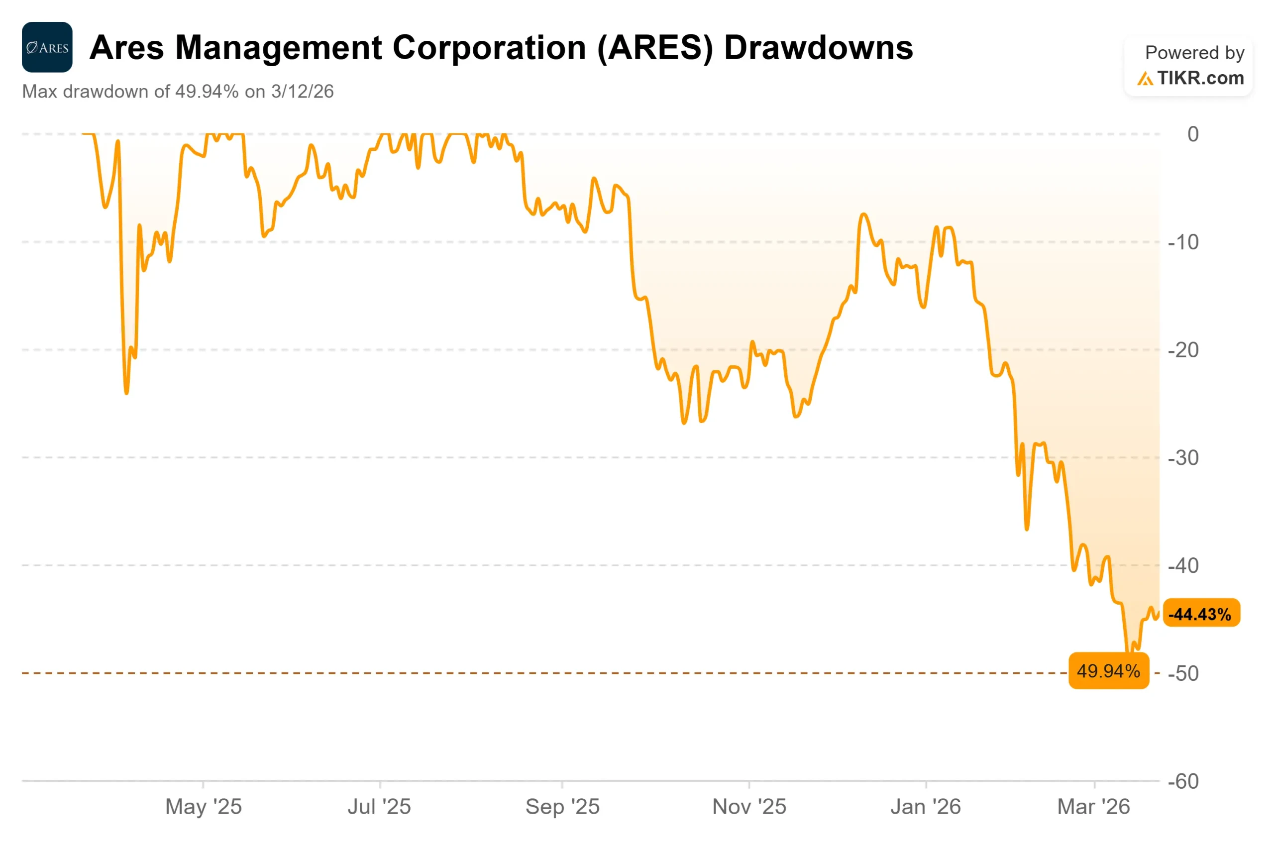 Atualmente, a Ares é negociada a US$ 105,87, tendo sofrido uma queda máxima extrema de 49,94% no início de 2026, que abalou o espaço mais amplo de gestão de ativos.