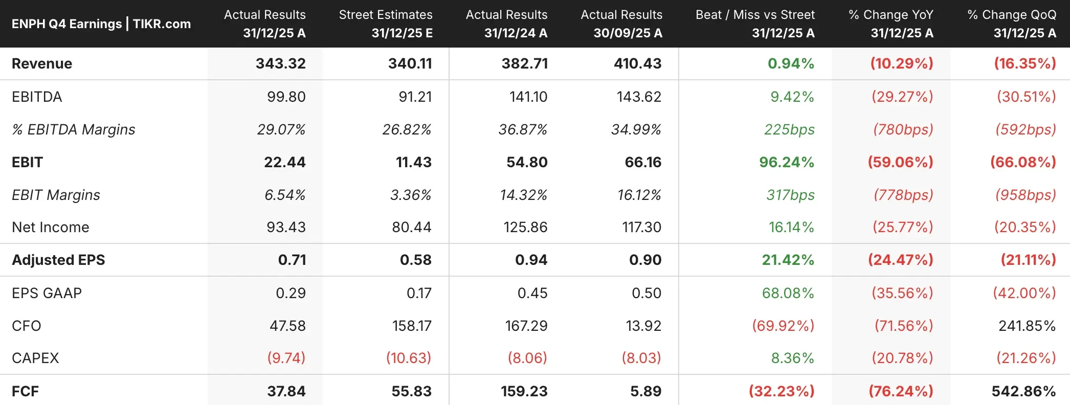- A Enphase divulgou uma receita de US$ 343,3 milhões no quarto trimestre, com um aumento de 21% nas vendas nos EUA em relação ao trimestre anterior, já que os proprietários de imóveis correram para instalar sistemas solares antes que o crédito fiscal da Seção 25D expirasse.