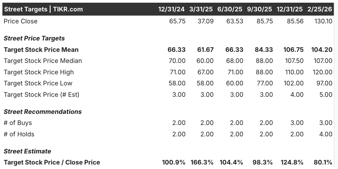 A chamada de resultados em 25 de fevereiro reforçou a confiança nos fundamentos de curto prazo. As ações fecharam em US$ 130 após o relatório, marcando uma nova alta de vários meses.