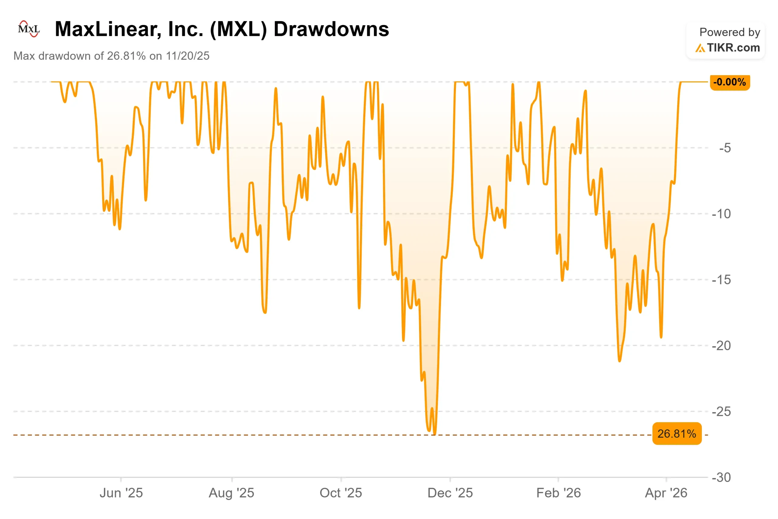 Poucas ações de semicondutores se movimentaram da mesma forma que a MaxLinear (MXL) fizeram esta semana. As ações subiram 76,12% em 24 de abril de 2026, na manhã seguinte aos lucros do primeiro trimestre de 2026, atingindo níveis de preços não vistos desde o início de 2022.