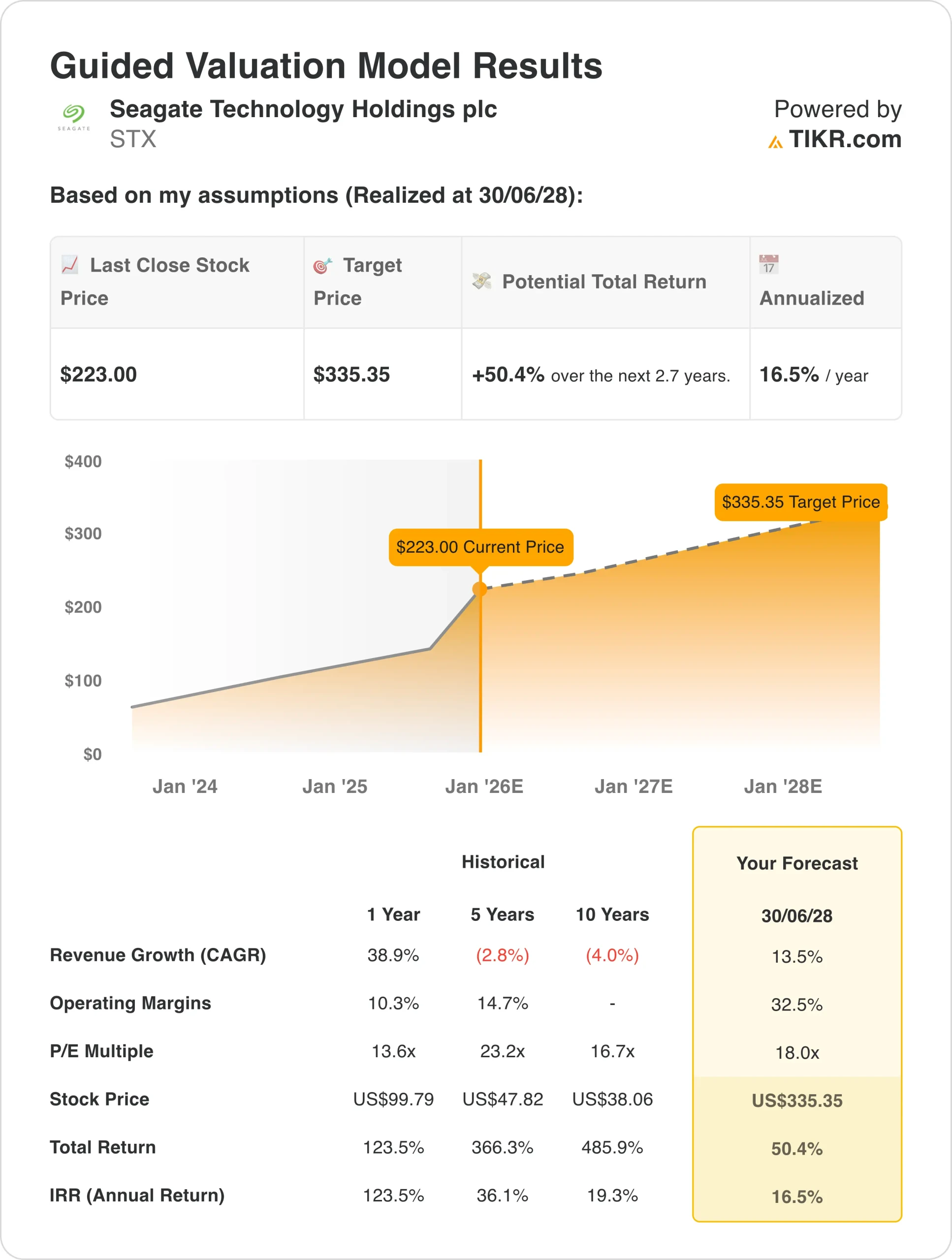 Com a nova ferramenta Modelo de avaliação da TIKR, você pode estimar o preço potencial das ações de uma empresa em menos de um minuto.