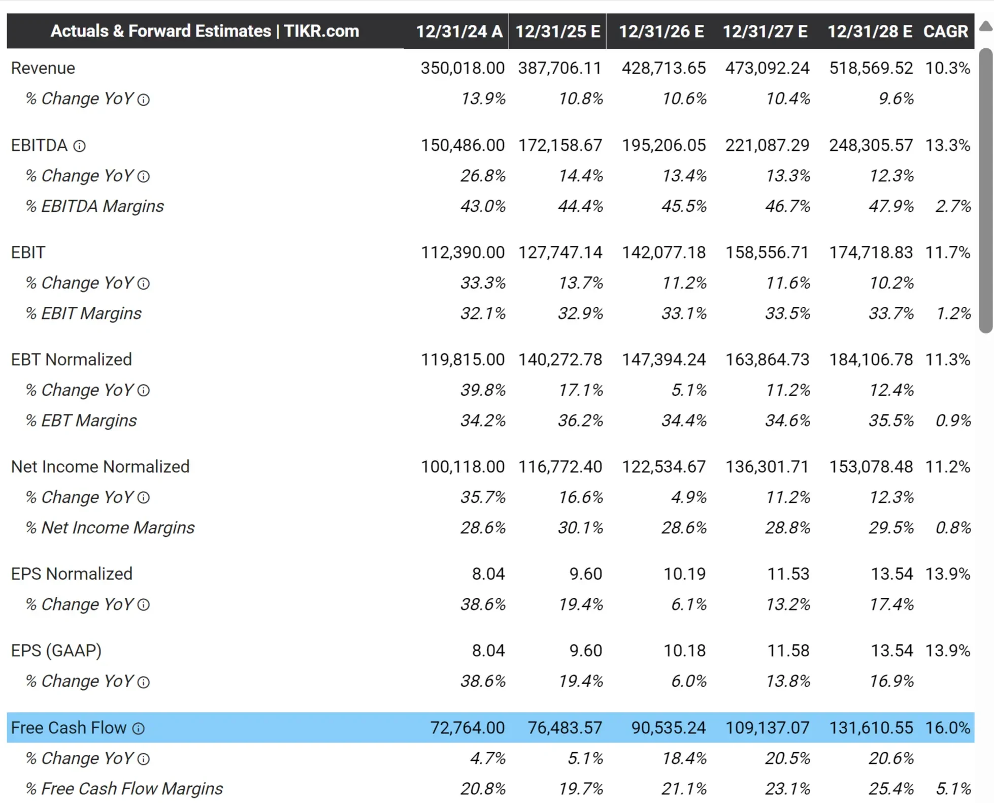 Plataformas como a TIKR facilitam o acesso a essas previsões. Em vez de ver apenas a previsão de lucros de uma empresa, você pode acompanhar tendências mais profundas e ver para onde a empresa pode estar indo.