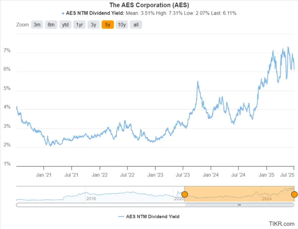 Com um rendimento de dividendos acima de 6% e um potencial de alta com base na avaliação, a AES parece ser uma rara oportunidade tanto para a renda de dividendos quanto para a valorização.