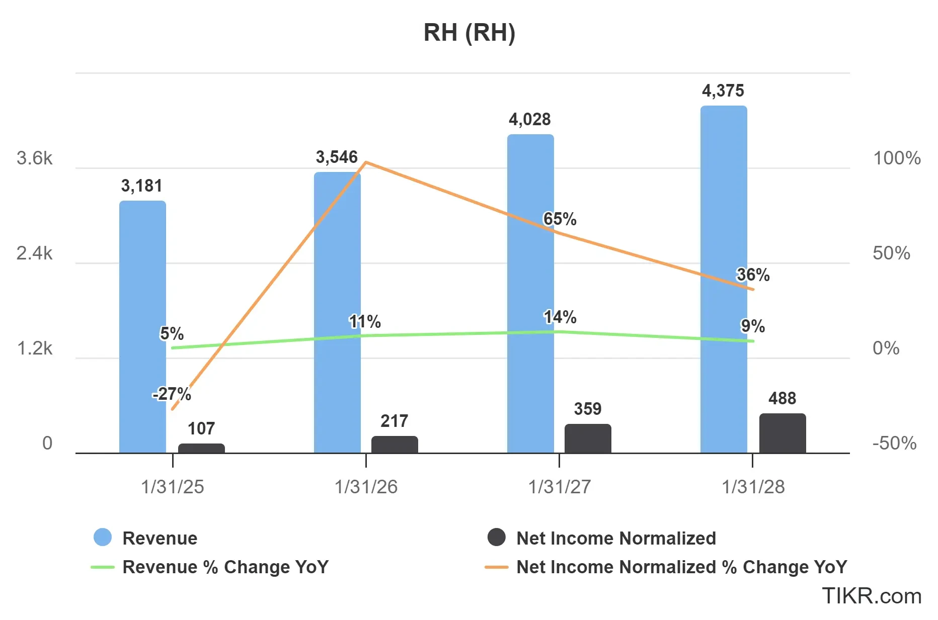 在 TIKR 上查看 RH 的完整财务数据、增长趋势和分析师预测 >>>