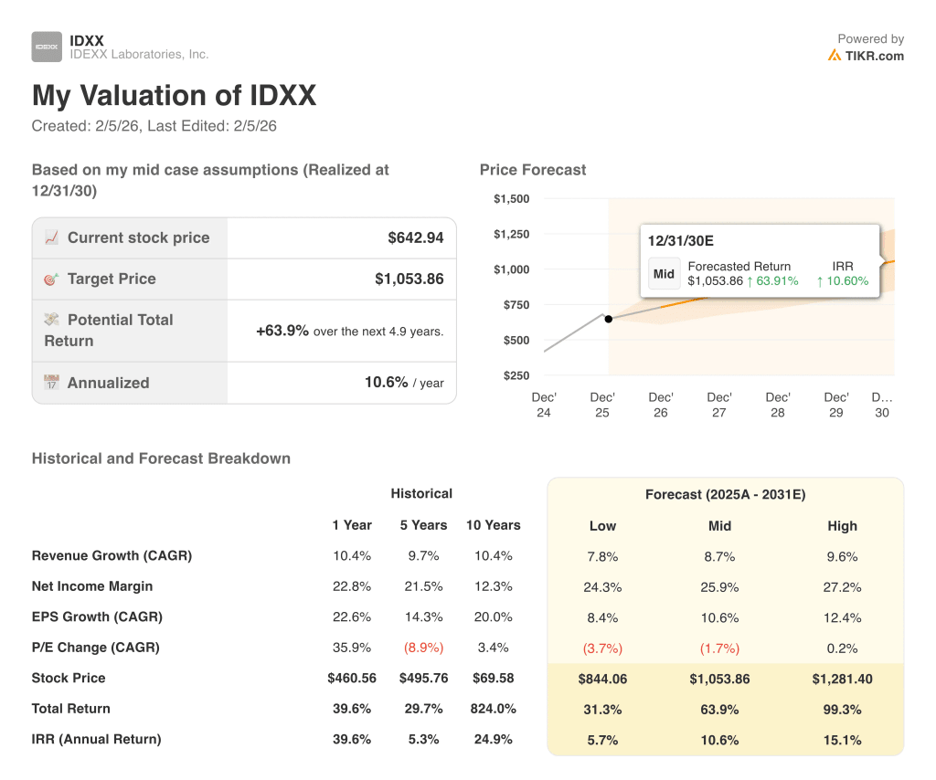 查看分析师目前对 IDXX 股票的看法(使用 TIKR 免费) >>>