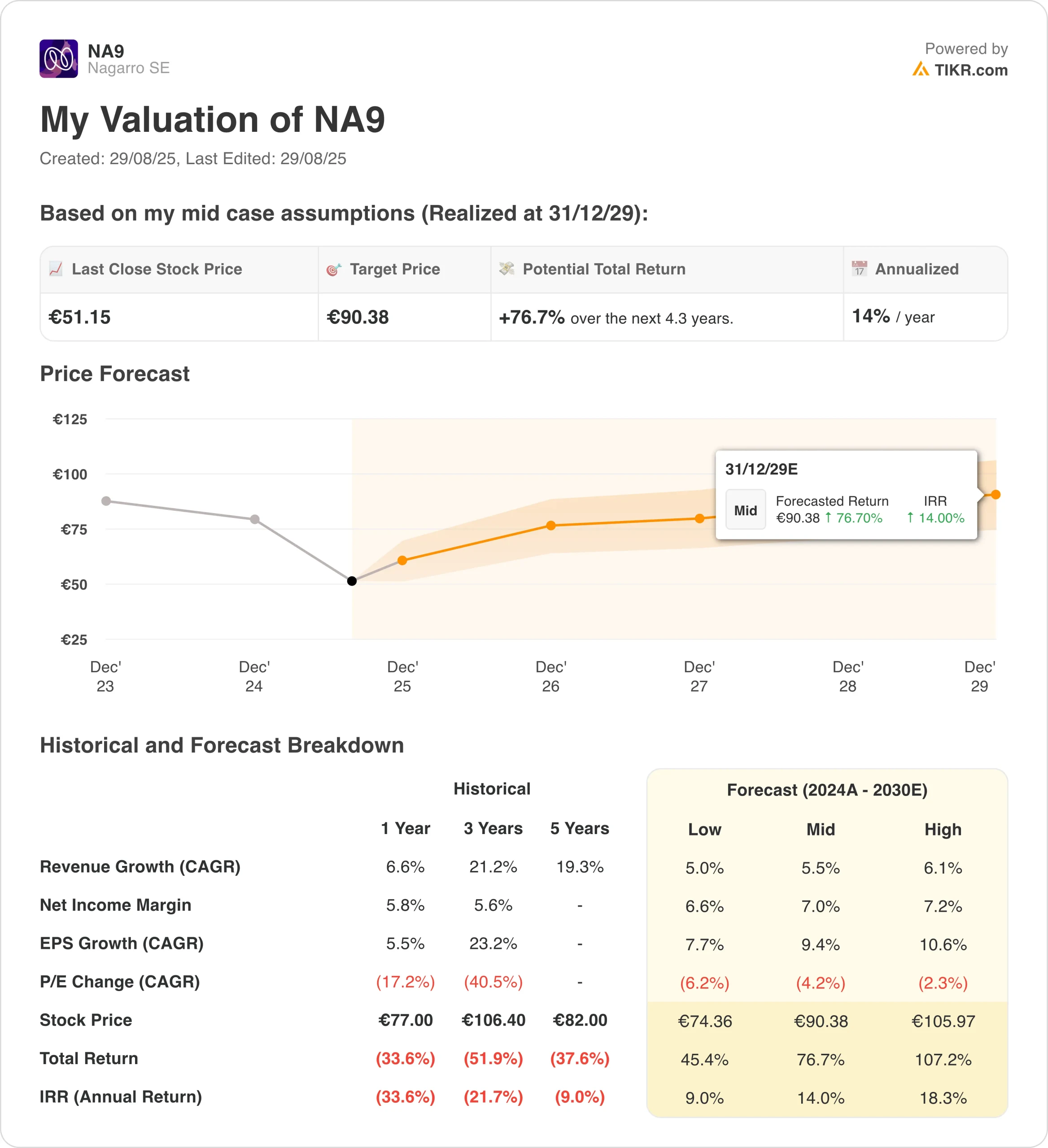 - 这意味着,从目前 51 欧元/股的价格来看,总回报率为 77%,未来 4.3 年的年回报率为 14%。