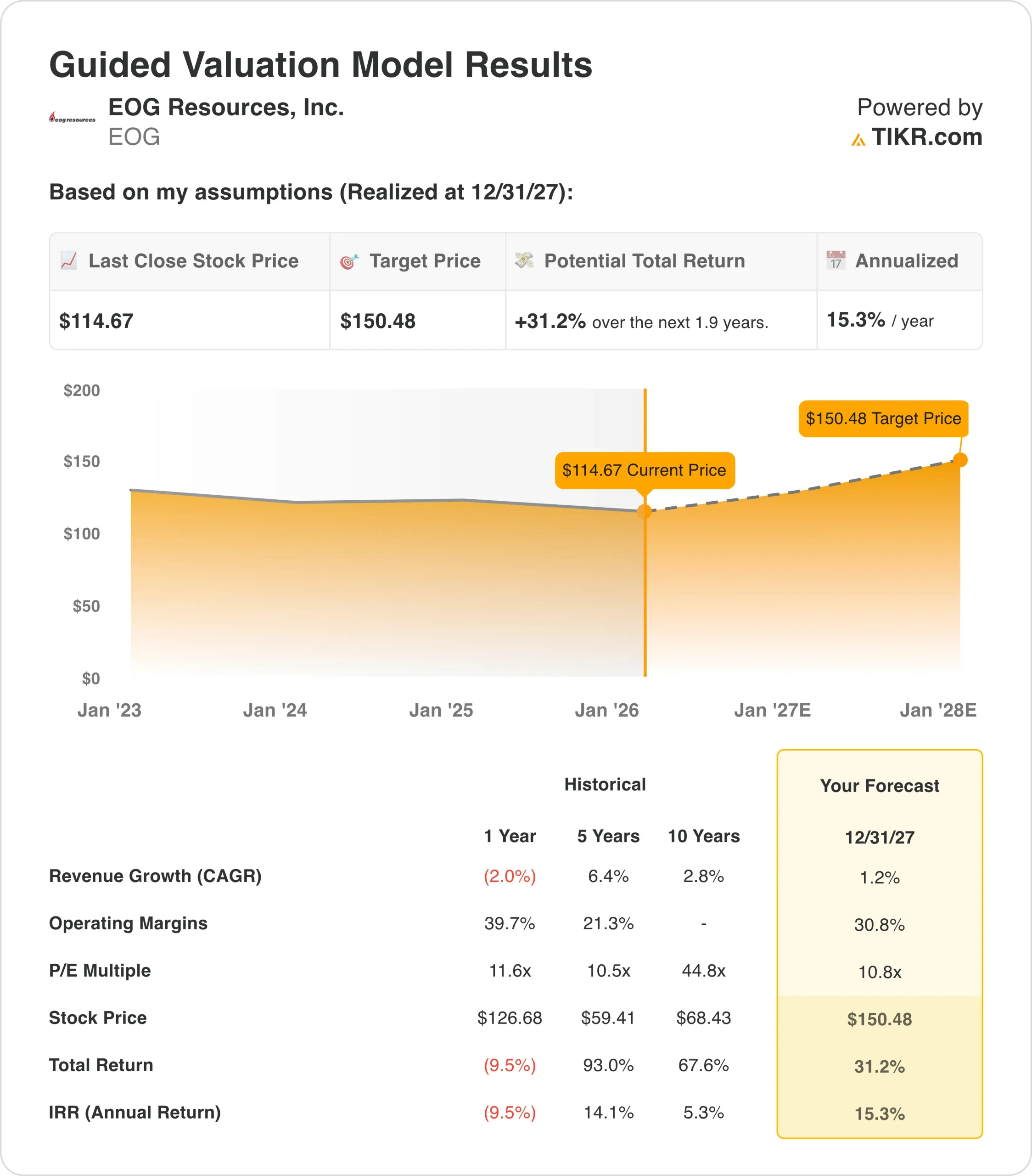 以下是我们对 EOG Resources 股票使用的假设: