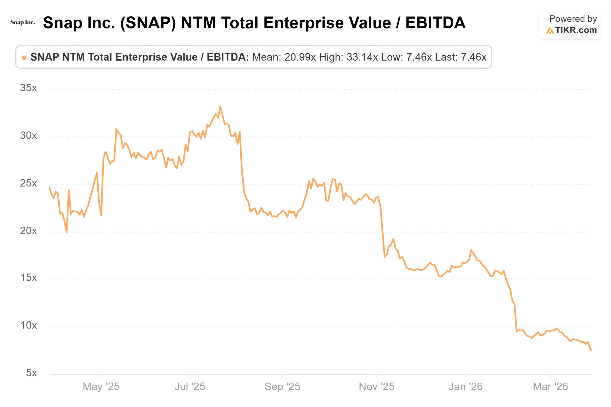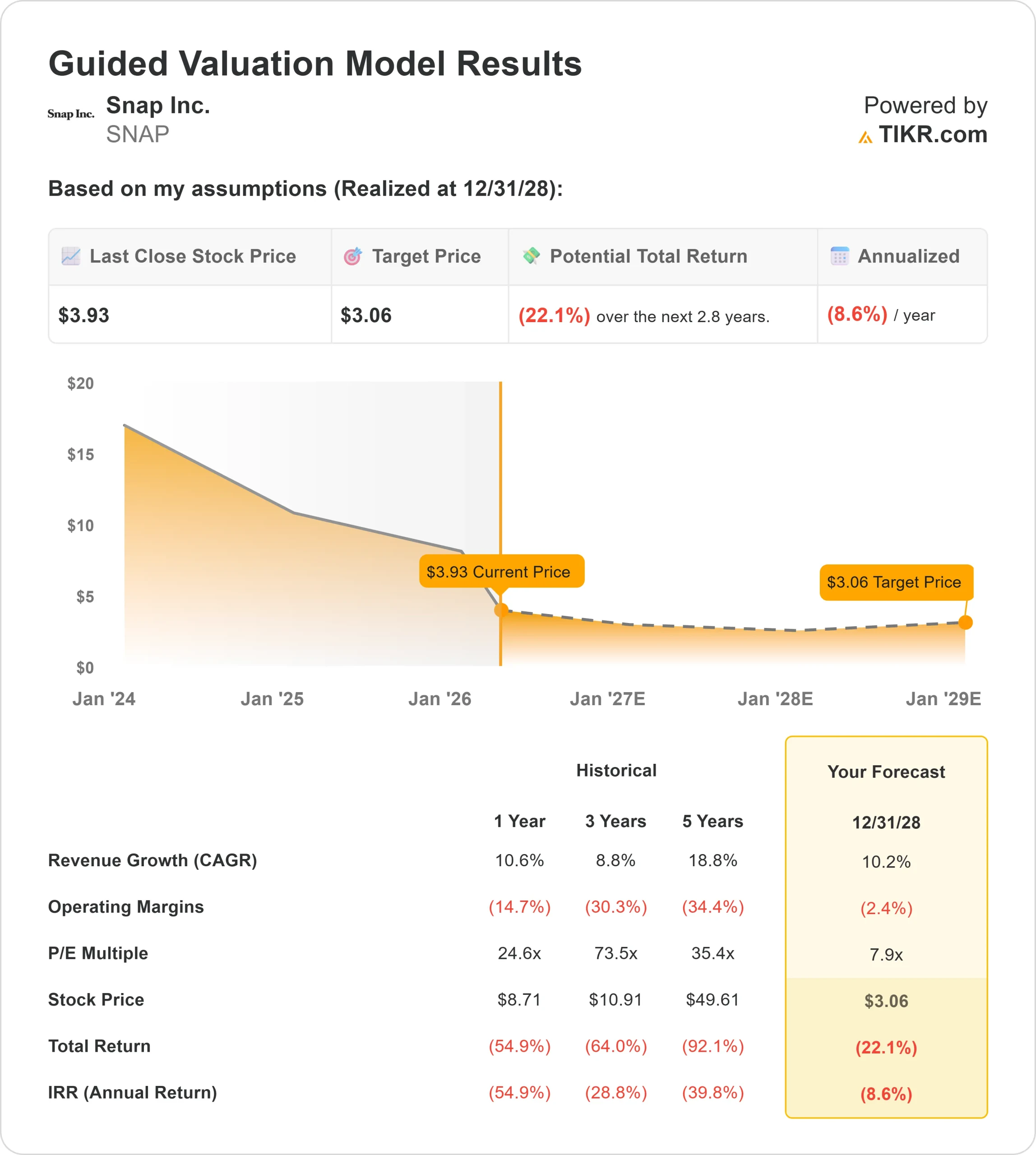查看 Snap 在 TIKR 中的表现(免费!) >>> TIKR 高级模型分析