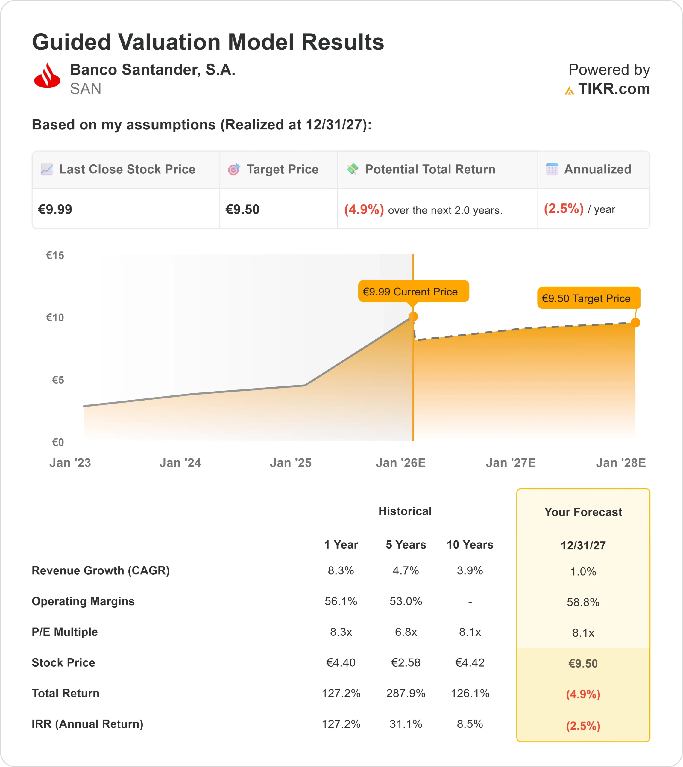 查看分析师对桑坦德银行股票未来 5 年的预测(免费提供 TIKR) >>>