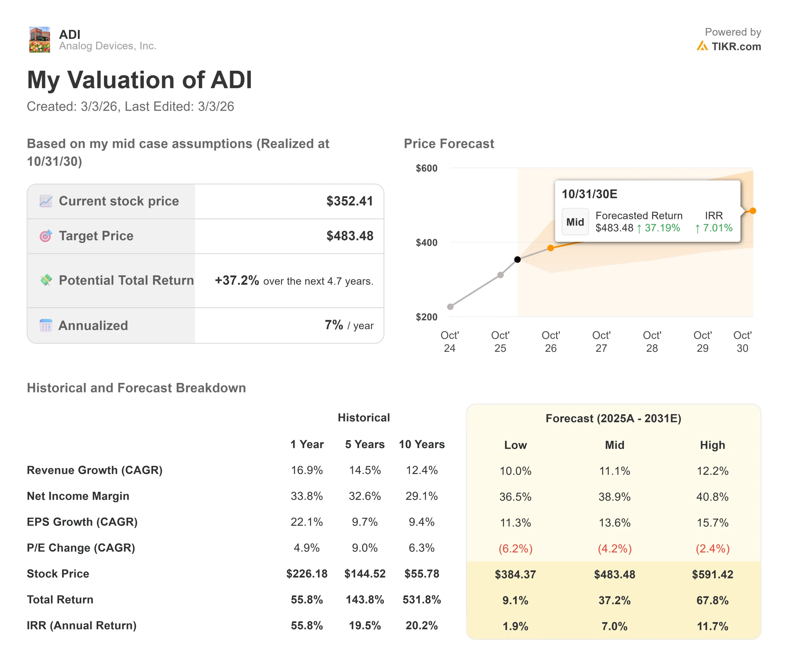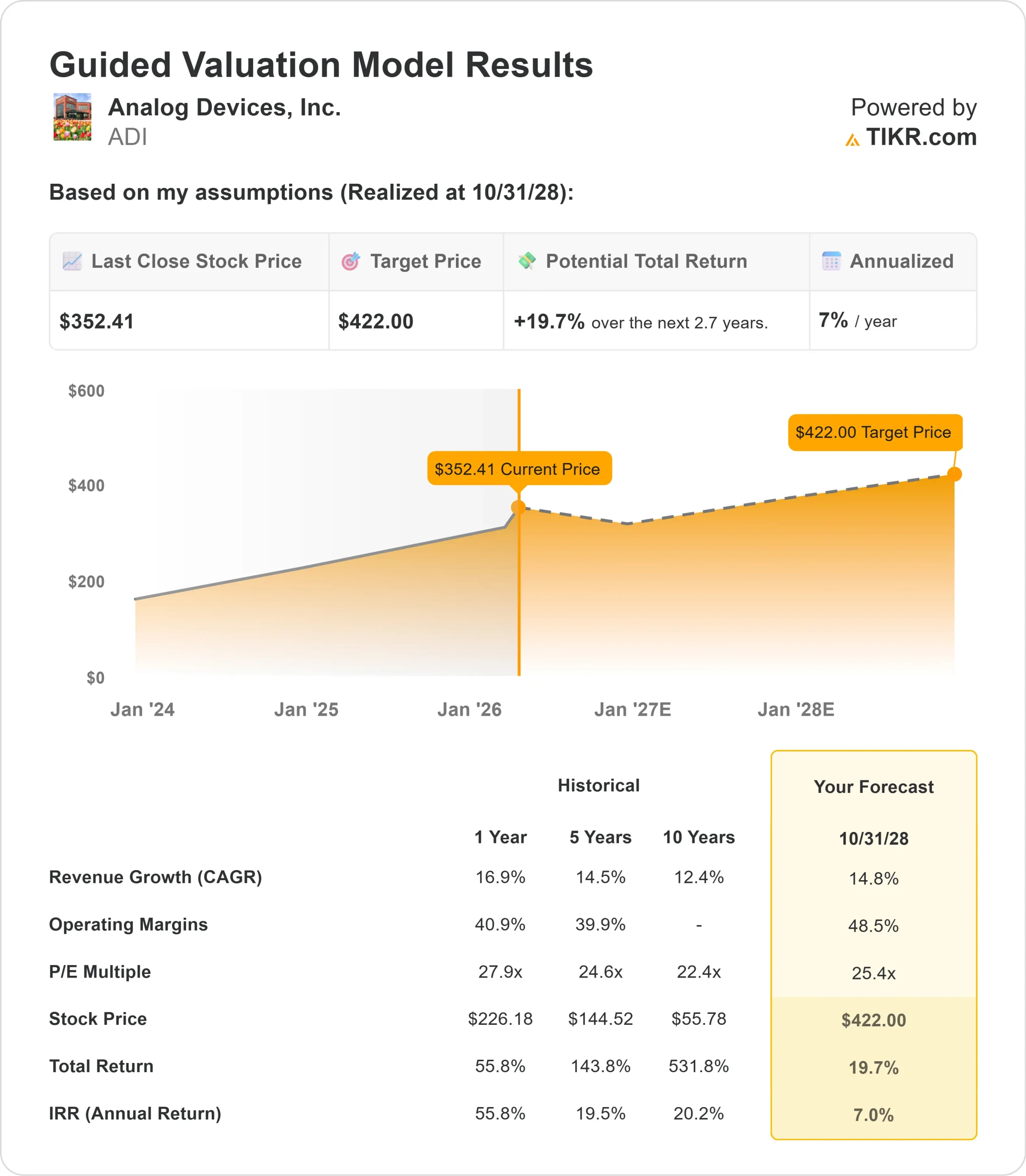 以下是我们对 ADI 股票使用的假设: